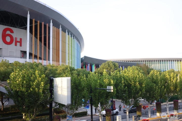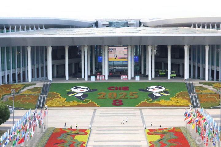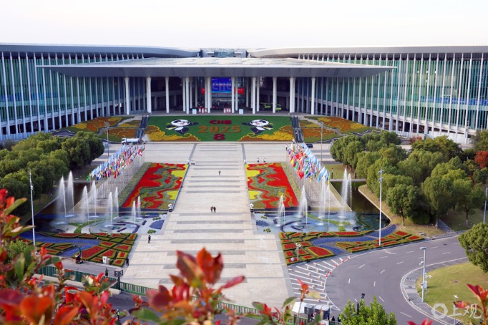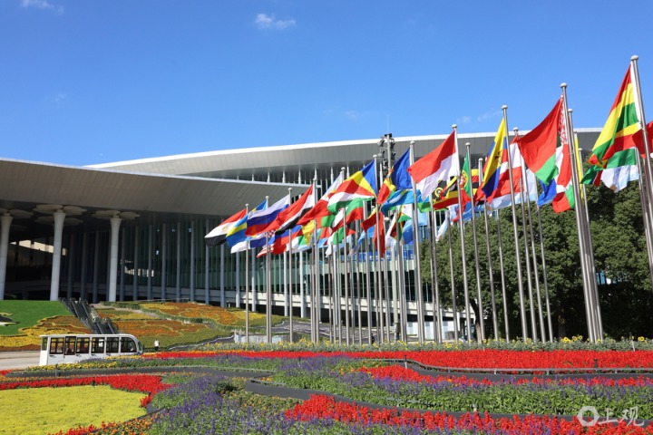 2025年10月30日,作为主场馆门面担当的国家会展中心(上海)南广场景观布置已全面“定妆”,静候盛会开启。