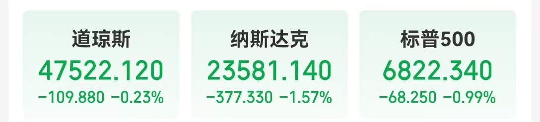 当地时间10月30日,美股三大指数集体收跌,纳指下跌377.33点,跌幅1.57%;标普500指数跌0.99%;道指跌0.23%。