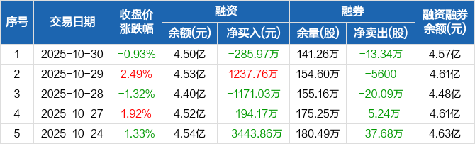 白银有色:融资净偿还285.97万元,融资余额4.5亿元(10-30)