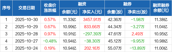 浙江龙盛:融资净买入3457.91万元,融资余额11.33亿元(10-30)