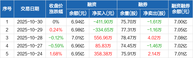 航天信息:融资净偿还411.9万元,融资余额6.94亿元(10-30)