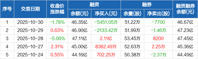 恒瑞医药:融资净偿还5451.05万元,融资余额46.35亿元(10-30)