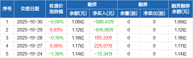 宣泰医药:融资净偿还589.43万元,融资余额1.06亿元(10-30)