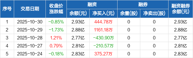 安邦护卫:融资净买入444.78万元,融资余额2.93亿元(10-30)