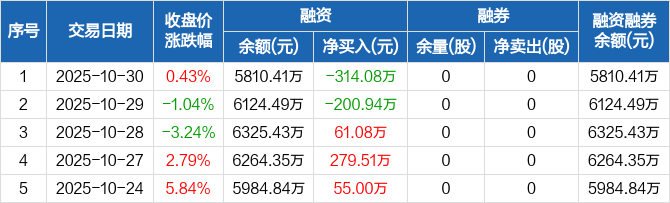 罗普特:融资净偿还314.08万元,融资余额5810.41万元(10-30)