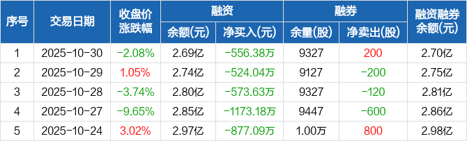 浙海德曼:连续5日融资净偿还累计3704.32万元(10-30)