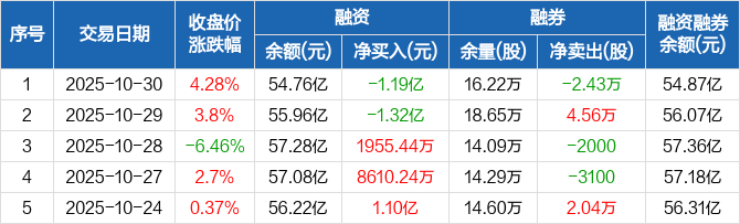 华友钴业:融资净偿还1.19亿元,融资余额54.76亿元(10-30)