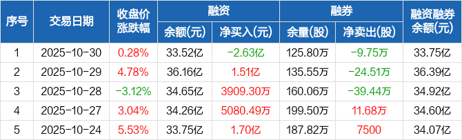 洛阳钼业:融资净偿还2.63亿元,创近一年新高(10-30)