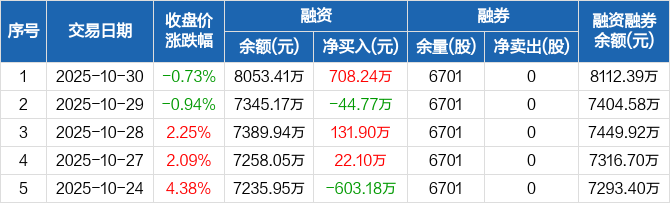 晶品特装:融资净买入708.24万元,融资余额8053.41万元(10-30)