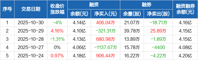上海临港:融资净买入406.04万元,融资余额4.14亿元(10-30)