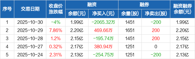 航宇科技:融资净偿还2065.32万元,融资余额1.99亿元(10-30)