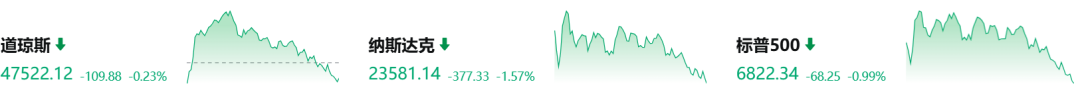 美东时间周四,美股三大指数集体下跌,道琼斯指数跌0.23%,标普500指数跌0.99%,纳斯达克综合指数跌1.57%,终结了连创新高的势头。