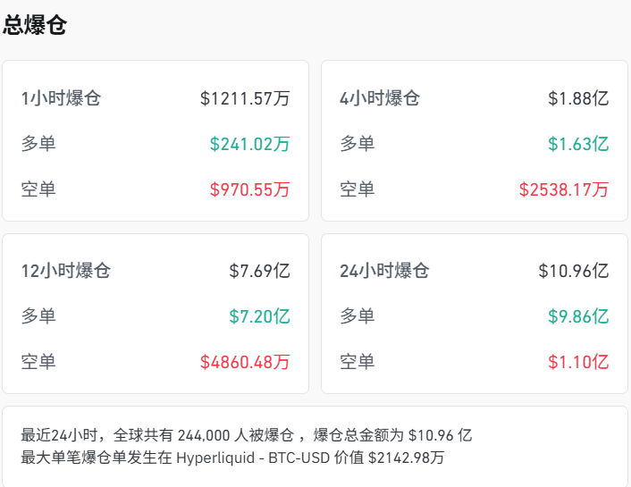 加密货币全线重挫,多只重要品种跌超6%,截至北京时间10月31日6:24,全市场共24.4万人被爆仓,爆仓金额近11亿美元