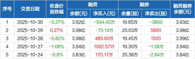 哈药股份:融资净偿还544.45万元,融资余额3.92亿元(10-30)