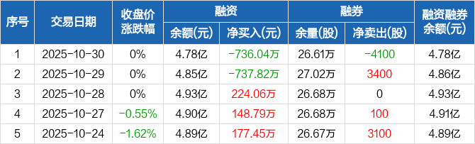 山鹰国际:融资净偿还736.04万元,融资余额4.78亿元(10-30)