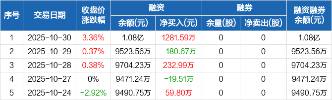 金浦钛业:融资净买入1281.59万元,融资余额1.08亿元(10-30)