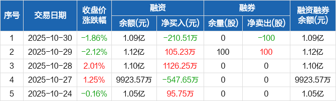 太阳电缆:融资净偿还210.51万元,融资余额1.09亿元(10-30)
