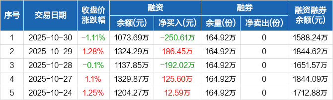 中证1000ETF易方达:融资净偿还250.61万元,融资余额1073.69万元(10-30)