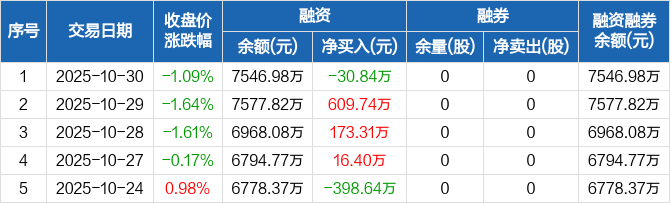 本立科技:融资净偿还30.84万元,融资余额7546.98万元(10-30)