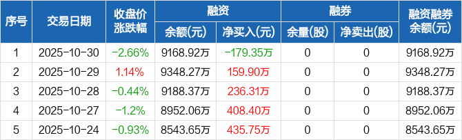 侨源股份:融资净偿还179.35万元,融资余额9168.92万元(10-30)