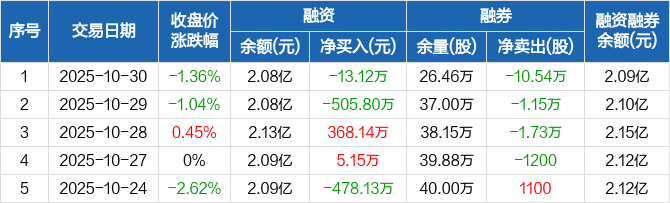 西部建设:融资净偿还13.12万元,融资余额2.08亿元(10-30)