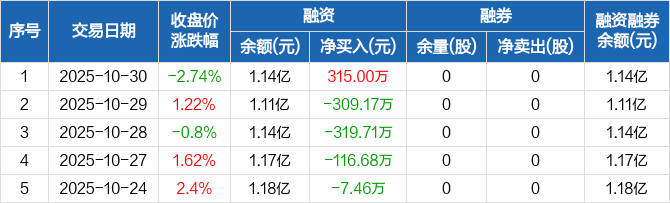 长华化学:融资净买入315万元,融资余额1.14亿元(10-30)