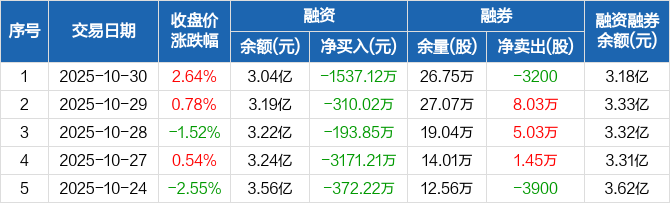 杰瑞股份:连续5日融资净偿还累计5584.42万元(10-30)