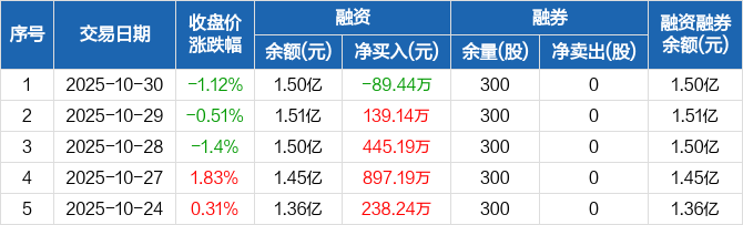 德尔玛:融资净偿还89.44万元,融资余额1.5亿元(10-30)