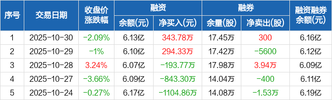 国投智能:融资净买入343.78万元,融资余额6.13亿元(10-30)