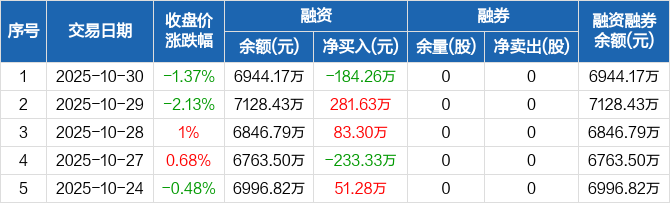 恒光股份:融资净偿还184.26万元,融资余额6944.17万元(10-30)