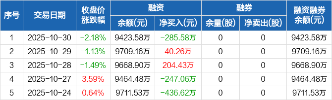 丰茂股份:融资净偿还285.58万元,融资余额9423.58万元(10-30)