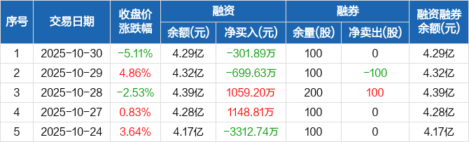 波长光电:融资净偿还301.89万元,融资余额4.29亿元(10-30)