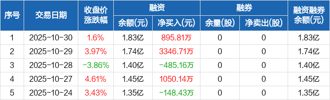 紫建电子:融资净买入895.81万元,融资余额1.83亿元(10-30)