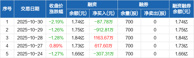 上大股份:融资净偿还87.78万元,融资余额1.74亿元(10-30)