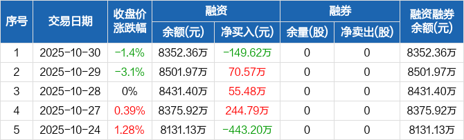 维海德:融资净偿还149.62万元,融资余额8352.36万元(10-30)