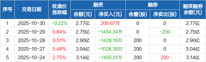 天奥电子:融资净买入200.67万元,融资余额2.77亿元(10-30)