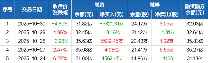 长川科技:融资净偿还6321.31万元,融资余额31.82亿元(10-30)