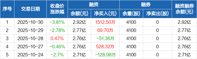 节能铁汉:融资净买入1512.5万元,融资余额2.92亿元(10-30)