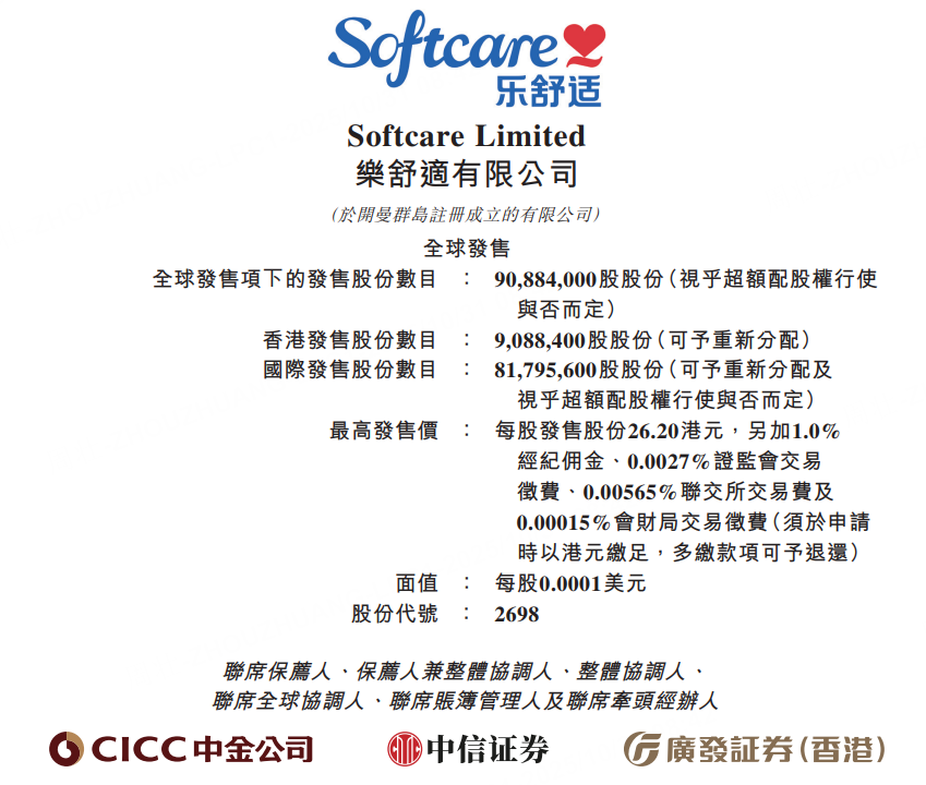 乐舒适(02698)于10月31日至11月5日招股,拟全球发售9088.4万股股份,其中香港公开发售占10%,国际发售占90%(可予重新分配),另有15%超额配股权。每股发售价24.2-26.2港元,每手200股,股份将于11月10日开始在联交所买卖。