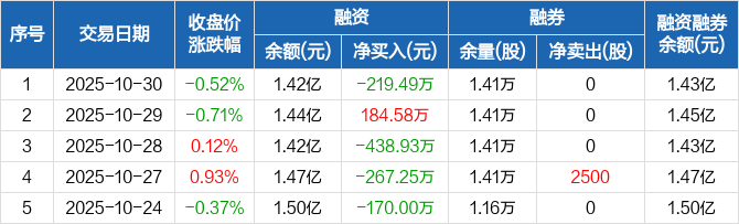 中机认检:融资净偿还219.49万元,融资余额1.42亿元(10-30)