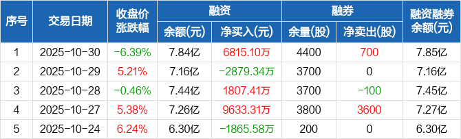 欧陆通:融资净买入6815.1万元,融资余额7.84亿元(10-30)