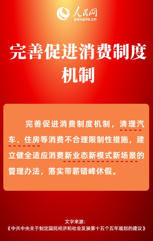 强大国内市场是中国式现代化的战略依托。《中共中央关于制定国民经济和社会发展第十五个五年规划的建议》提出,“以新需求引领新供给,以新供给创造新需求,促进消费和投资、供给和需求良性互动,增强国内大循环内生动力和可靠性。”透过几组关键词,看未来五年国内市场将迎来哪些发展新机遇。