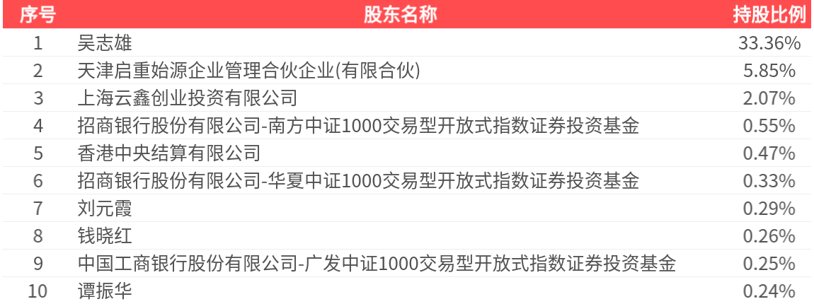 公司股东户数为6.57万户,前十大股东持股数量为2.53亿股,占总股本比例为43.66%,前十大股东持股情况如下: