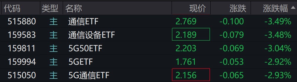 通信概念股早盘走低,5G、通信相关ETF跌约3%