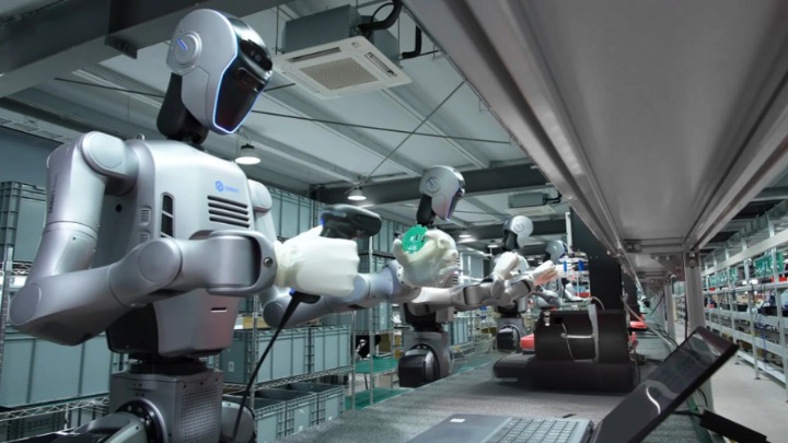 (越疆科技Atom人形机器人在PCB质检场景工作)