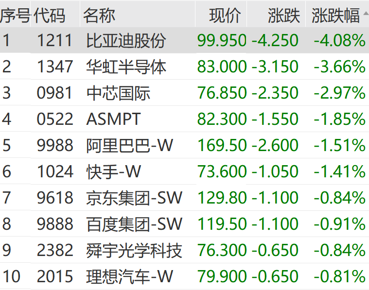 港股三大指数早间低开,截至发稿仍然飘绿。比亚迪股份跌超4%,领跌恒生科技指数成份股。
