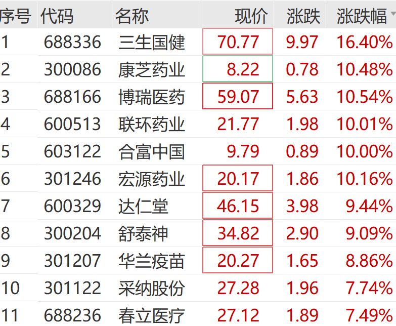 医药生物板块整体拉升,创新药盘中活跃,三生国健涨超16%,再创新高;联环药业、合富中国涨停,康芝药业、博瑞医药等涨超10%。