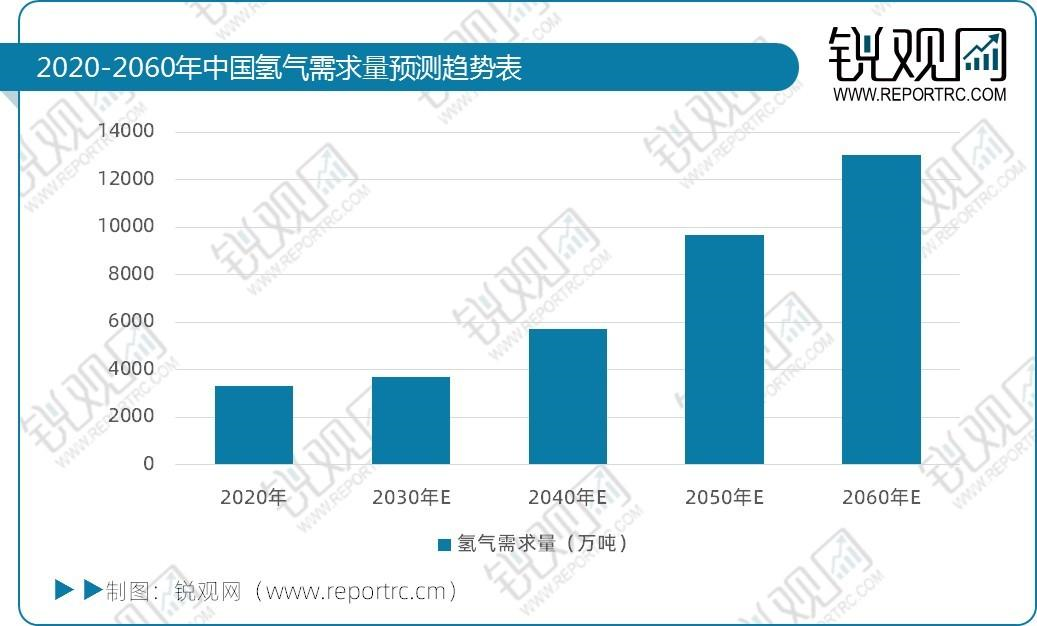 在“碳中和”目标的指引下,氢能需求将迎来爆发式增长。分析师预测,到2030年,我国氢气年需求量将达到3715万吨,在终端能源消费中的占比约为5%;到2060年,年需求量将增至1.3亿吨左右,占比提升至20%,成为终端能源消费的重要组成部分。