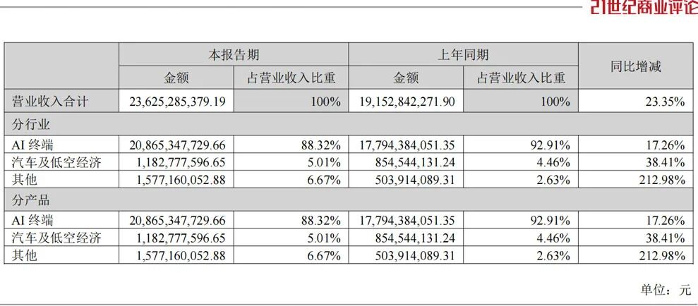 机器人业务尚在培育期,汽车及低空经济业务则冒头很快,经过四年发展,成长为第二大业务。