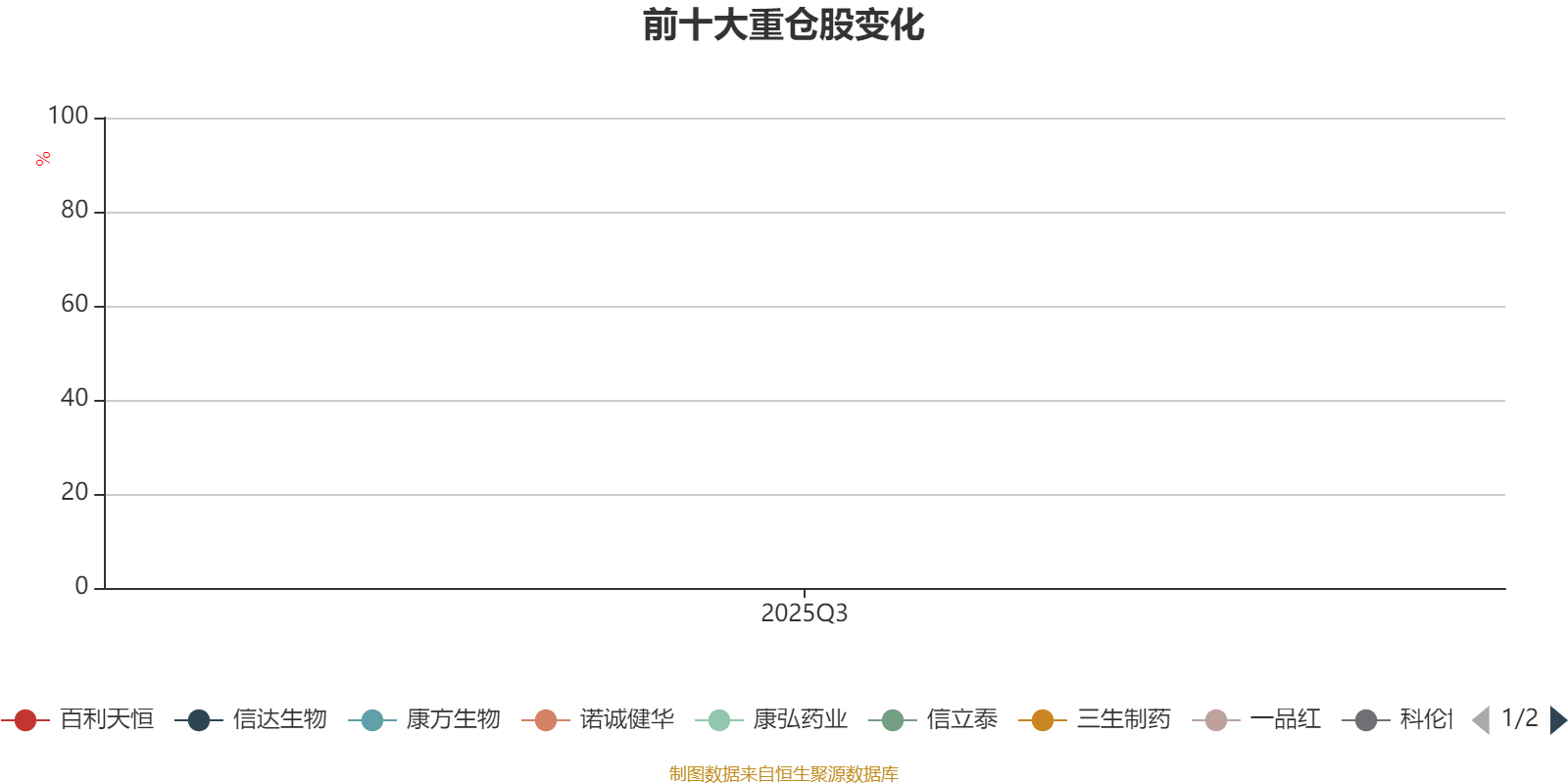 截至2025年三季度末,基金十大重仓股分别是百利天恒、科伦博泰生物-B、信达生物、三生制药、康方生物、诺诚健华、康弘药业、信立泰、石药集团、一品红。